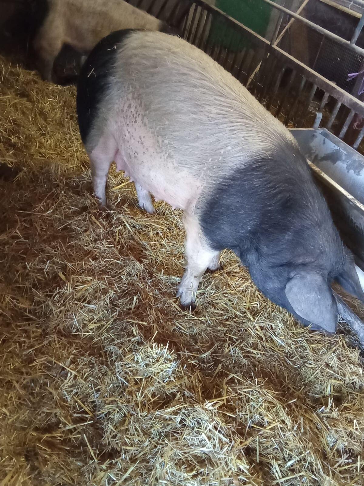 Verkaufe ganzjährig Mastschweine, Trockenfütterung ohne Mais, Haltung auf Stroh ohne Spalten und mit Auslauf ins Freie. Entweder lebend oder geschlachtet in 2 Hälfte
