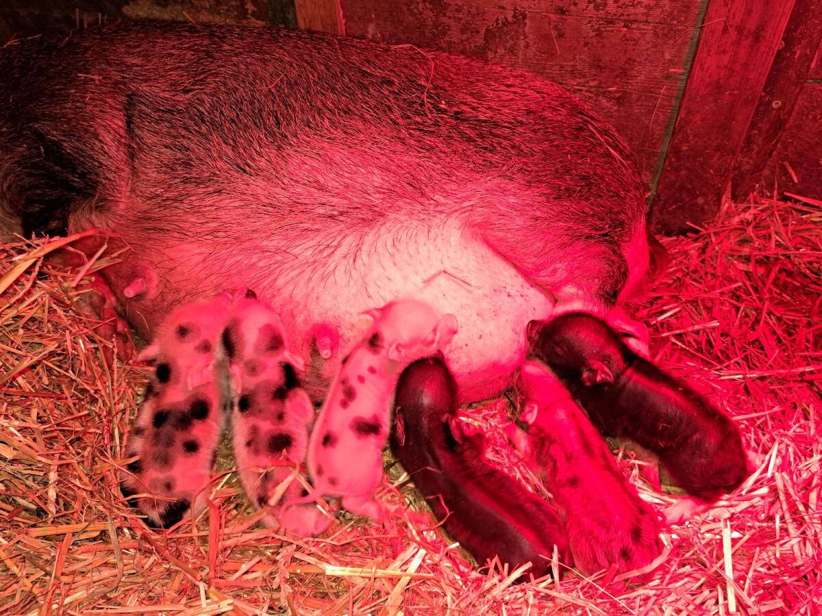 Reinrassige Duroc Ferkel und Duroc x Schwäbisch Hall x Pietrain Kreuzungsferkel ab Mitte Mai abzugeben. Vorzüge: frohwüchsig, ausreichend Magerfleischanteil, ausgeze