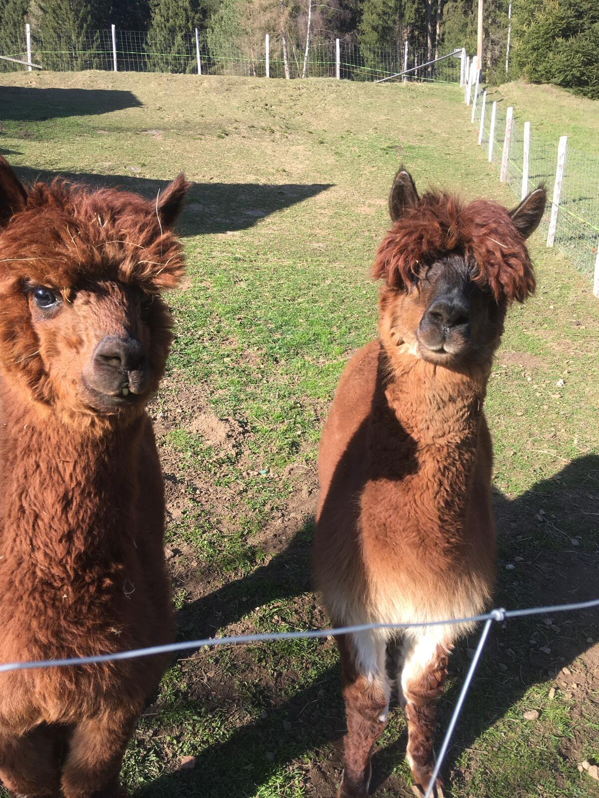 Unser 5 Jahre junger Alpakahengst Wauki (im Bild li.) ist auf der Suche nach einem neuen Zuhause. Nähere Informationen gerne auf Anfrage. Sonstige Tiere Alpakas