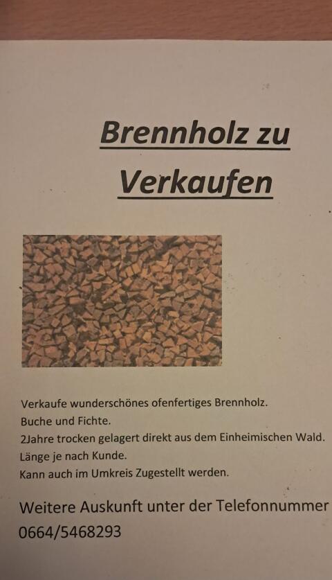 Verkaufe ca. 21 Raummeter hartes Brennholz (Buche, Eiche) zu € 110, - pro Raummeter. Scheiter sind 1 m lang und wurden 2 Jahre getrocknet. Keine Zustellung, nur Selbs
