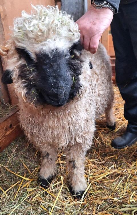 Verkaufen Lamm Lucy, geb. 22.5.25. Aus Zuchtbetrieb, Elterntiere beide 1b, Hb fähig aber mit kleinen Farbfehlern, siehe Fotos. Schafe Walliser Schwarznasenschafe