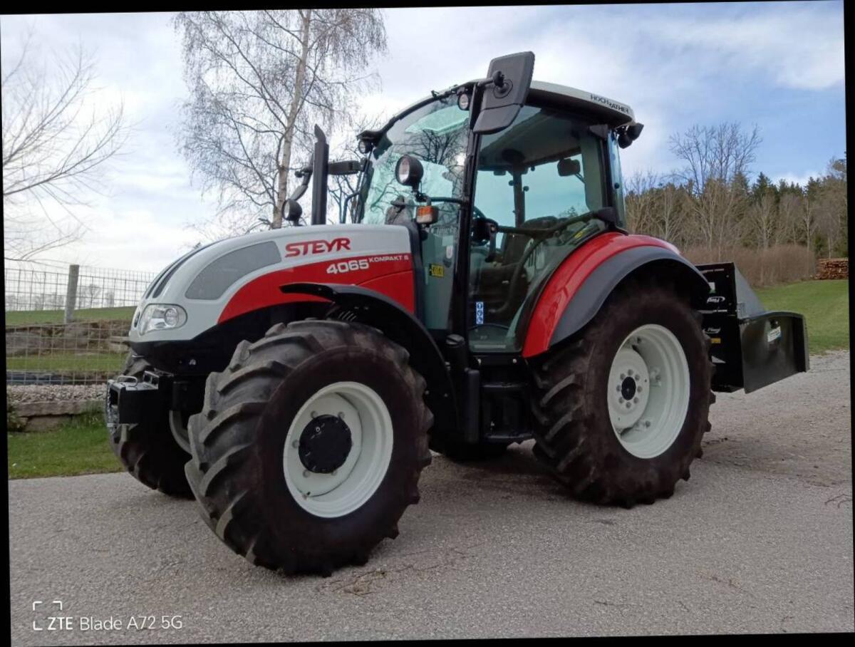 Steyr mit 65 PS, Bj. 2022, 425 Bstd., servicegepflegt, 3 Heckstg., Deluxe Kabine, Luftsitz, Klima, mech.-hydr. Powershuttle, 90 l Tank inkl. Schutz, Teleskopspiegel,