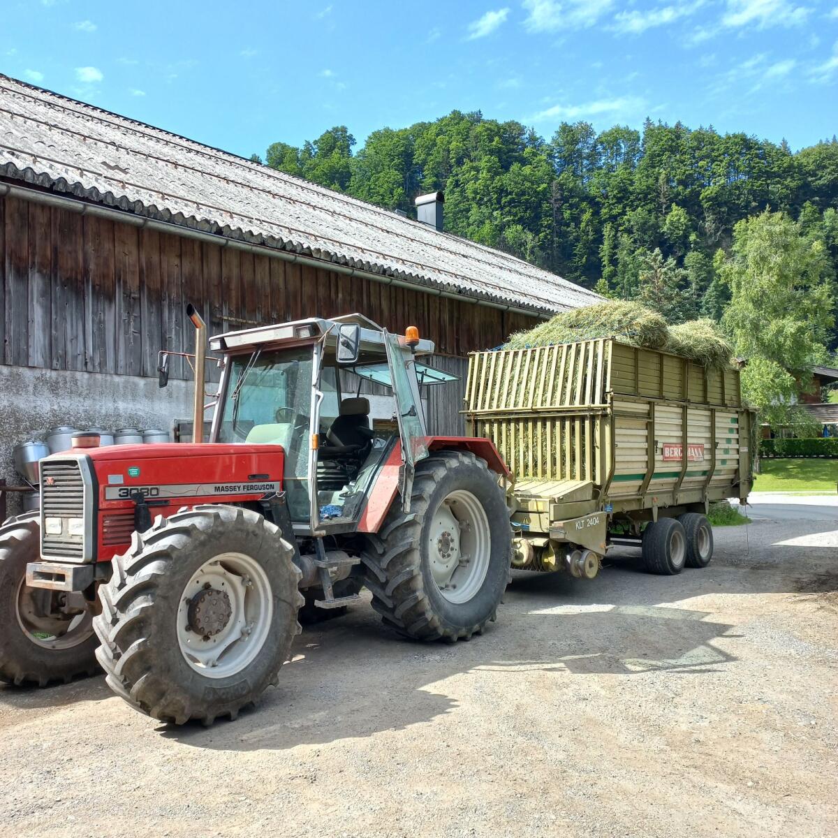 Der Frontlader zeichnet sich durch seine Vielseitigkeit aus, ermöglicht durch zahlreiche Anbaugeräte. Ob für den Transport mit einer Palettengabel, die Handhabung von Erntegut mit einer Ballengabel oder Erdbewegungen mit einer Schaufel – er passt sich nahtlos den Bedürfnissen Ihres Hofes an.