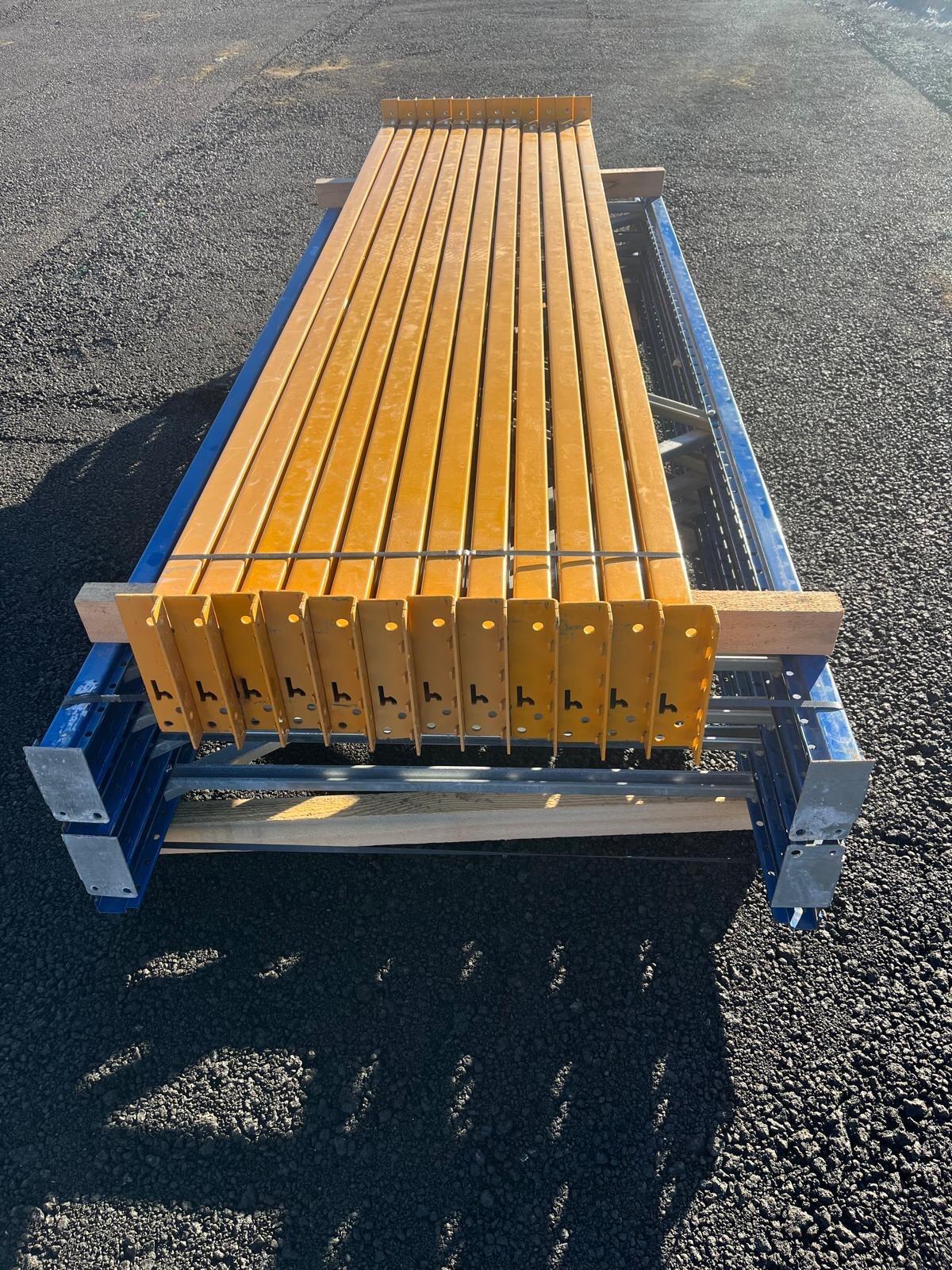 Verkaufe ein gebrauchtes Schwerlastregal (Palettenregal) von der Firma Jungheinrich. Das Regal besteht aus 4 Stehern mit einer Höhe von ca. 2, 7 m und 12 Traversen mi