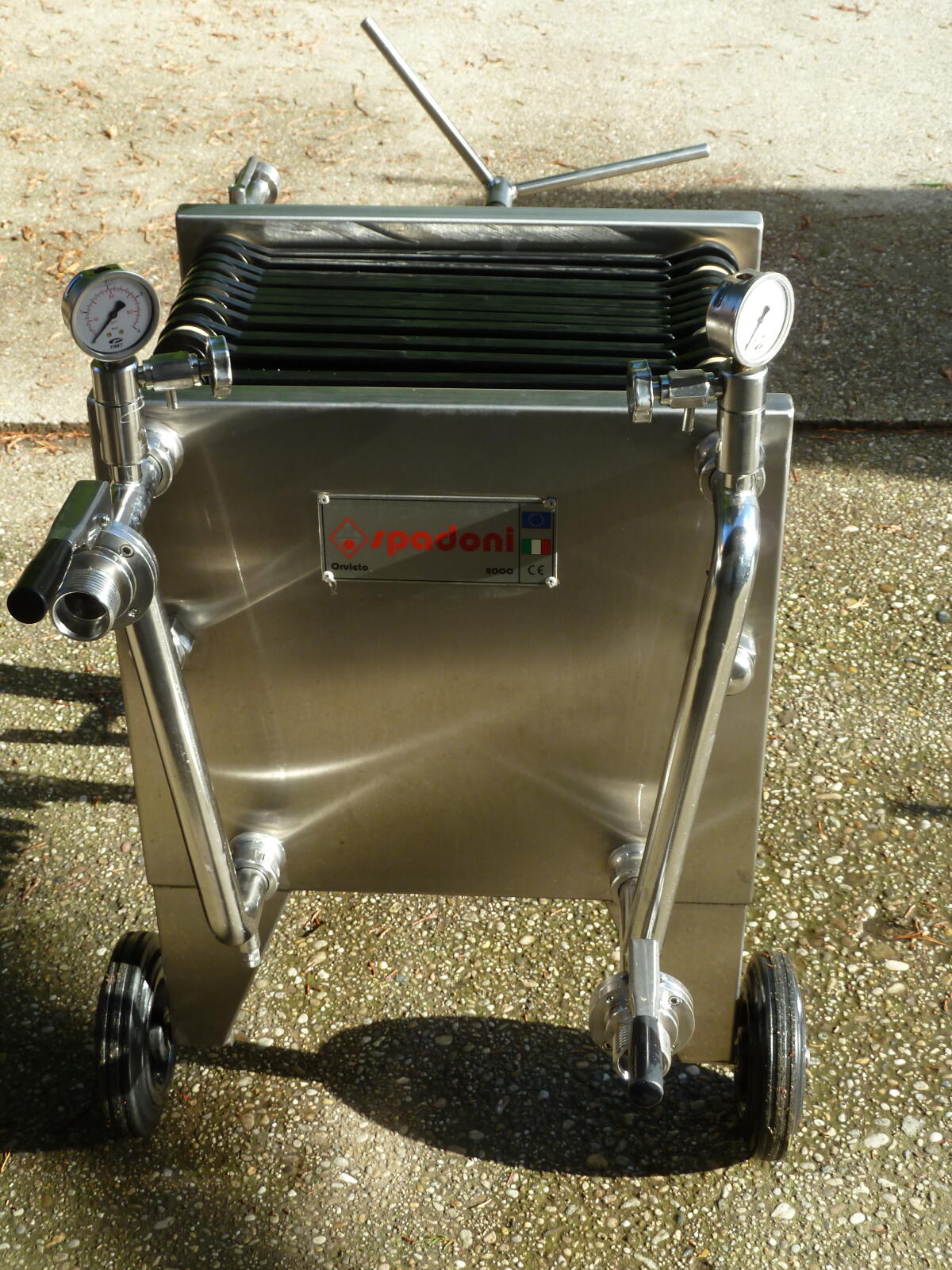 Spadoni Schichtenfilter 40 x 40, außenliegende Kanäle, Gestell für 20 Schichten, Platten für 11 Schichten, Filter wurde wenig gebraucht und nicht gedämpft (Platten u