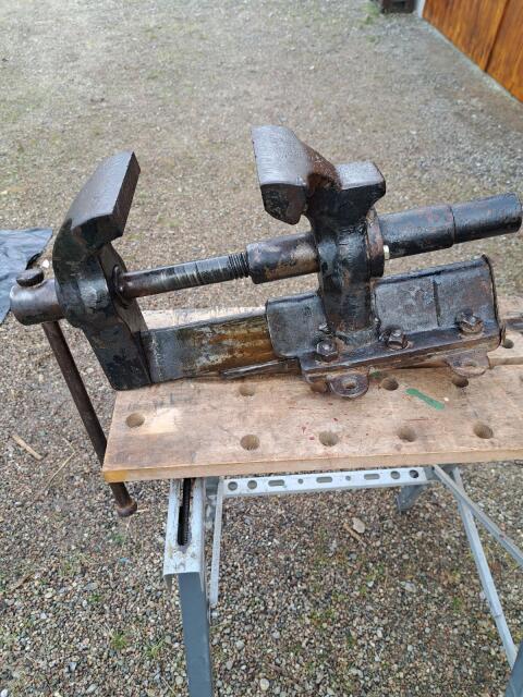 Biete einen Schraubstock (schwere Ausführung) zum Verkauf an. Er bietet folgende Eigenschaften: Backenbreite 130 mm, Spannbereich 130 mm, V-Führung, stabile Ausführu