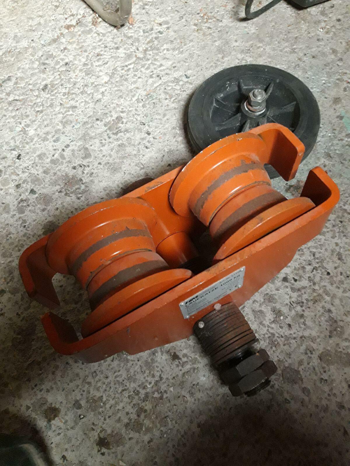 2 Stk. Kranlaufkatze mit Spurweite von 175 mm, ca. 4 t Belastung, per Stk. € 150, -, 2 Stk. Kranlaufkatze mit Spurweite von 115 mm, ca. 4 t Belastung, per Stk. € 150,