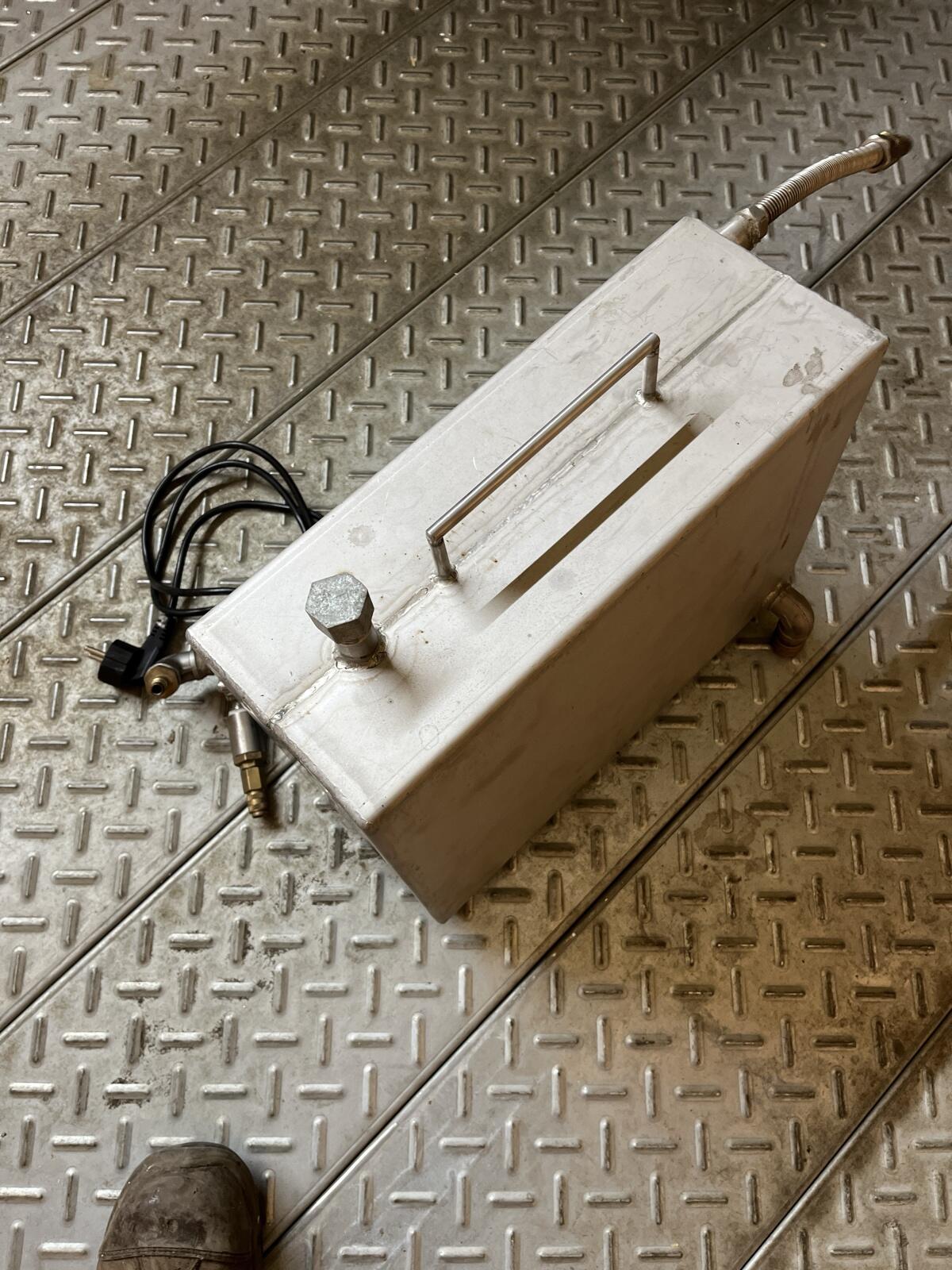 Verkaufe ein Kühlgerät für wassergekühlte Schweißbrenner. Volumen ist ca. 18 l. Die Pumpe läuft mit 230 V. Die Anschlüsse passen bei jedem Standard Schweißbrenner. W