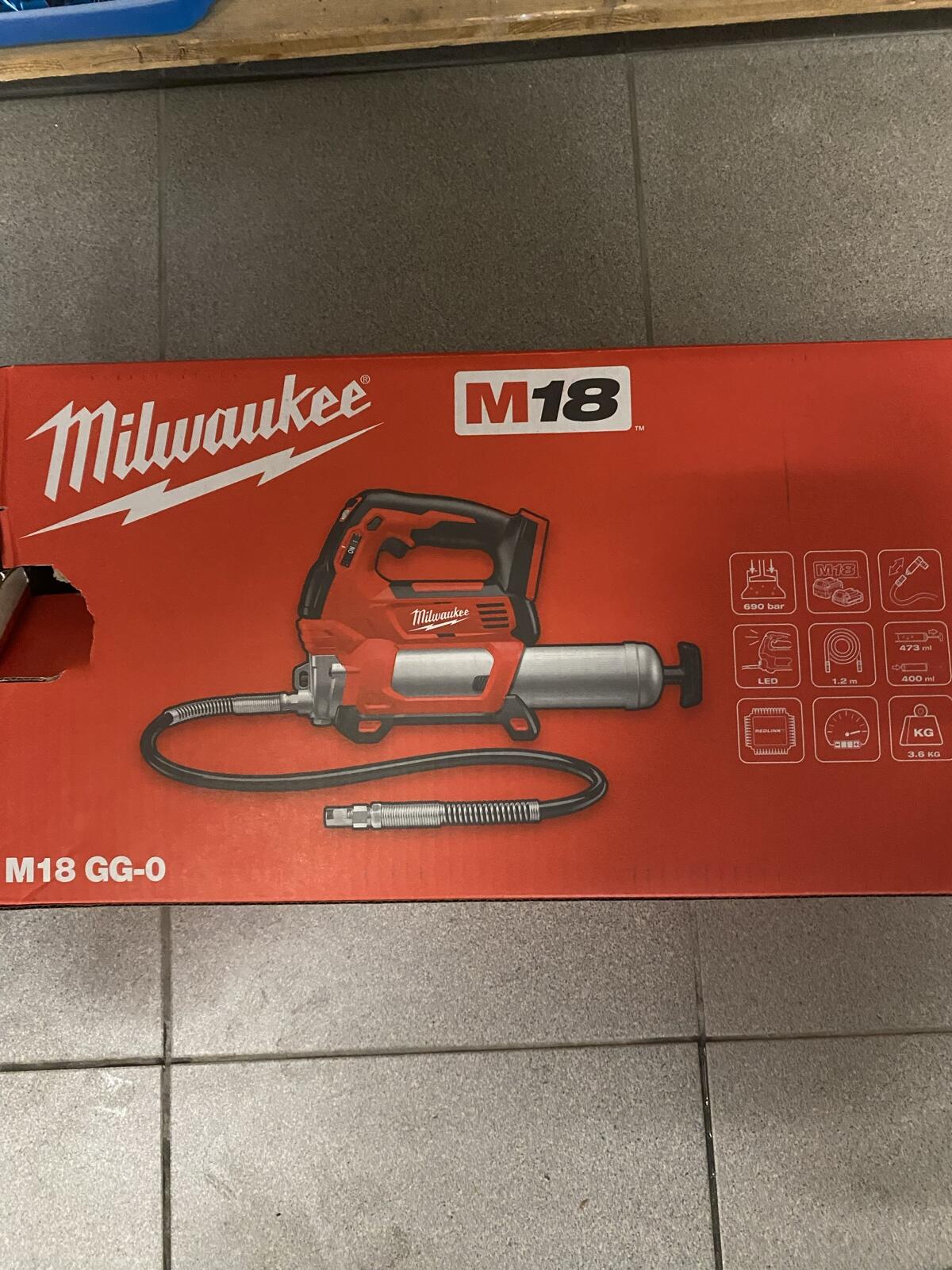 Verkaufe Milwaukee M18GG Akkufettpresse. Gerät funktioniert einwandfrei. Verkauf erfolgt ohne Akku und ohne Schmiernippelanschluss. Werkstatt Werkstattausstattung