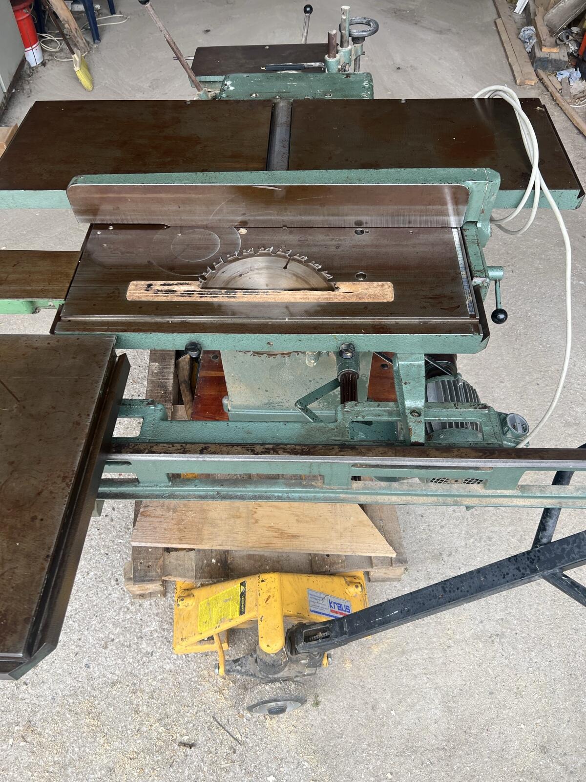 Verkaufe wegen Neuanschaffung meine Felder 5-Fach-Kombi BU7FK41G mit Drehkranz: Kreissäge, Abrichte, Dickenhobel, Fräse und Langlochbohrmaschine. Hobelbreite: 410 mm