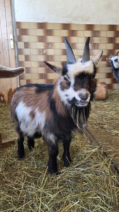 Da er in unserer Herde gute Arbeit geleistet hat, trennen wir uns von unserem Zwergziegenbock. 1 1/2 Jahre alt, eher klein, sehr zahm, lässt sich streicheln und fris