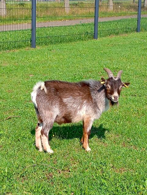 Verkaufe weibliche Ziege (2 Jahre), hat seit der Geburt eine Krümmung am li. Vorderfuß, dies hält sie jedoch nicht ab, ein normales Ziegendasein zu führen. Ist flink