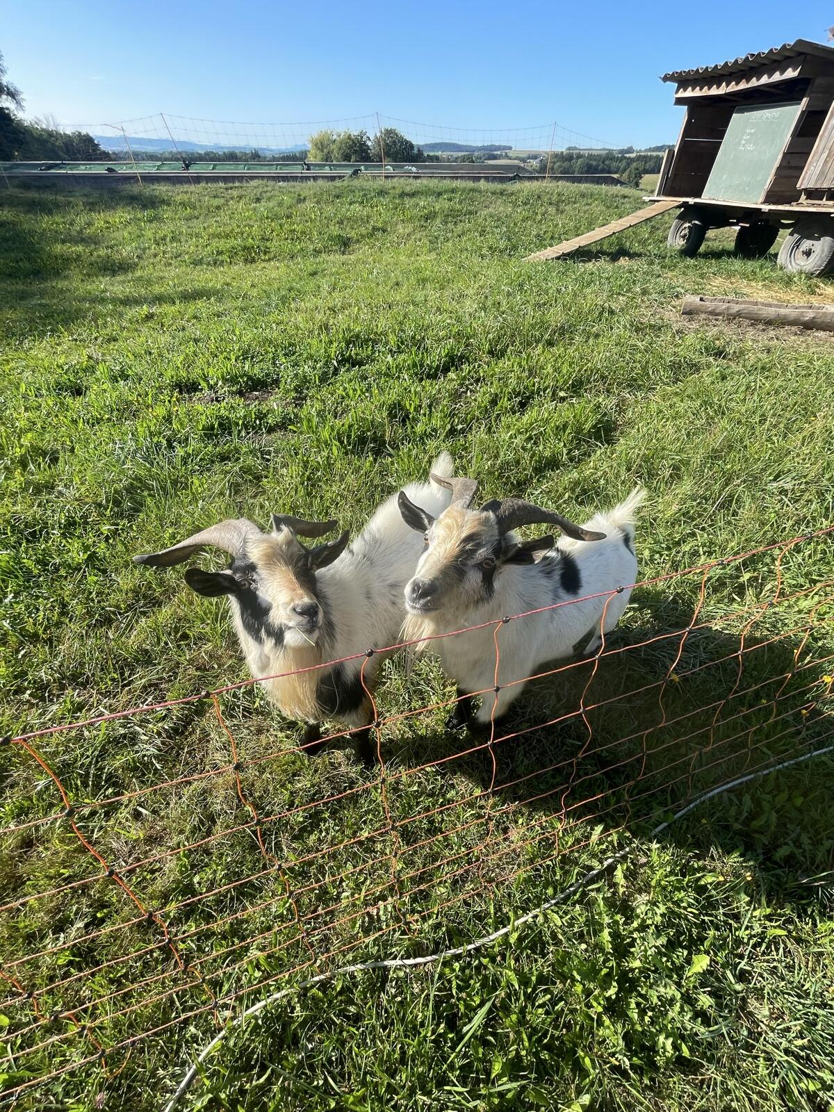 Verkaufe aufgrund Bestandsverkleinerung unsere 2 Mutterziegen (2-jährig) inkl. 3 Ziegenkitze (2x weiblich, 1x männlich). Die Muttertiere sind super leinenführig, wur