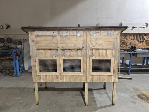 Verkaufe Hasenstall in gutem Zustand, Maße: 1, 80 m x 0, 8 m und 1, 70 m hoch, beschichteter Boden, Dach ist mit Dachpappe abgedichtet, Lagerplatz für Futter unterm Dac
