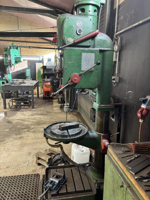 Verkaufe Getriebebohrmaschine, mit Vorschub, Bohrleistung 40 mm Dm., sehr robust, Preis VHB, Stapler zum Verladen vor Ort. Werkstatt Metallbearbeitung