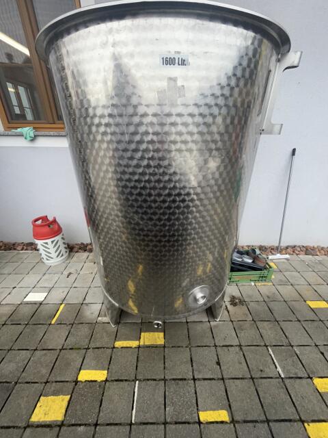 Speidel Immervolltank mit Galgen für den Deckel. Glatte Oberfläche. Weinbau Kellereimaschinen