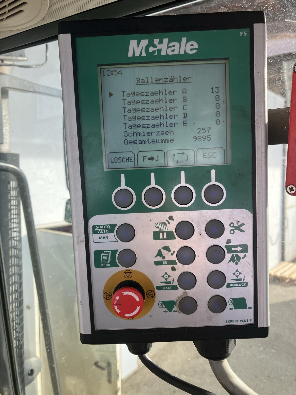 Verkaufe McHale F5600 mit 9.895 Stk. Ballen drauf, davon die Hälfte Heu/Stroh. Schneidwerk mit 25 Messer, 2 Messersatz. Automatische progressive Ketten- und Lagersch