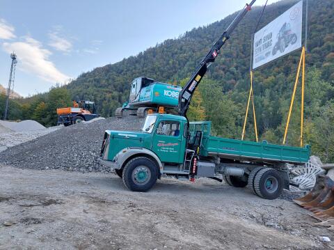 Schöner restaurierter Oldtimer Lkw Saurer 150, 3-Seitenkipper mit Kran, historisch typisiert, fahrbereit, bei Interesse bitte melden. Nutzfahrzeuge Lastwagen (LKW)