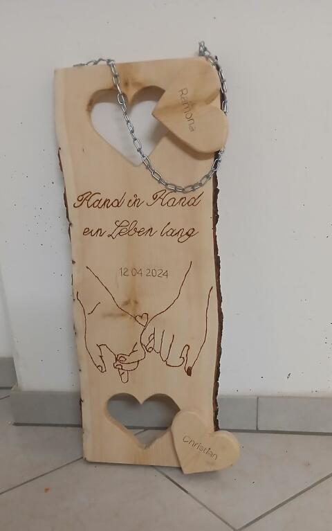 Zirbensteher zum Aufhängen, für Hochzeit oder Geburtstage, verschiedene Namen möglich, Versand möglich, Versand zahlt Käufer, neuwertig. Holz Zirbenholz