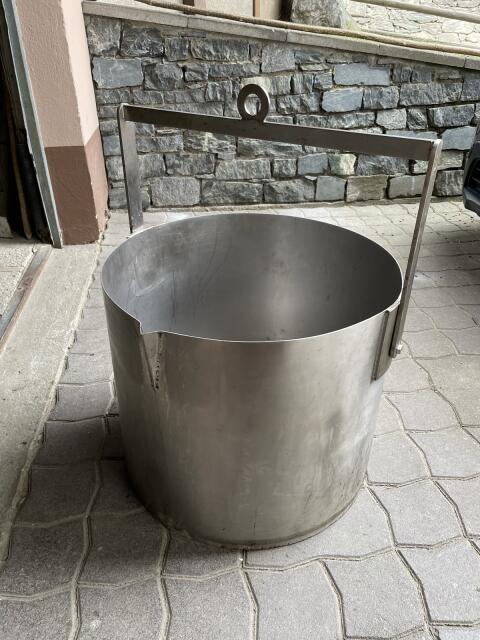 Verkaufe Topf, sehr massiv mit Henkel, Maße siehe Bilder, Wandstärke 2 mm, Boden 4 mm, auch zum Kochen auf Gasplatte geeignet. Abholung in Prägraten. Verpackung / Au