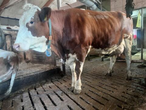 Verkaufe sehr brave Fleckvieh Erstlingskuh, 69 Tage in Milch, belegt am 15.01.2026 mit Melodie Pp, DeLaval Melkroboter gewohnt. Verkauf, weil Milchtank voll. Rinderm