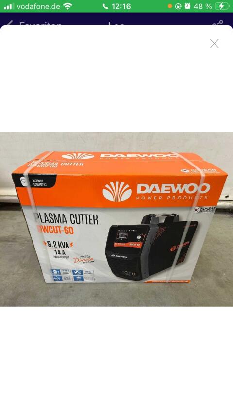Marke: Daewoo, Typ: DWCUT60, Max. Schneiddicke: 20 mm, el. Anschluss: 380 V, Maschinengewicht: 15 kg, Abmessung L: 535 mm, Abmessung W: 210 mm, Abmessung H: 380 mm,