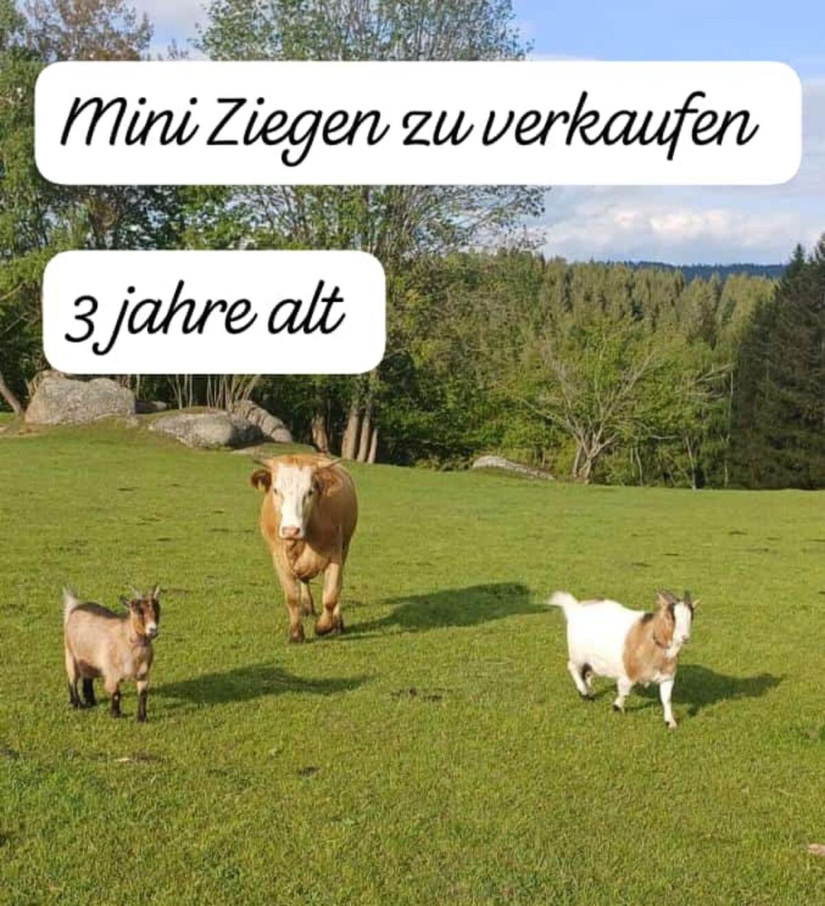 Wir verkaufen unsere zutraulichen Mini-Ziegen. Bock kastriert und Ziege. Sind zutraulich, laufen 24 h auf der Wiese mit unseren Kühen, kein Weglaufen, keine Unarten.