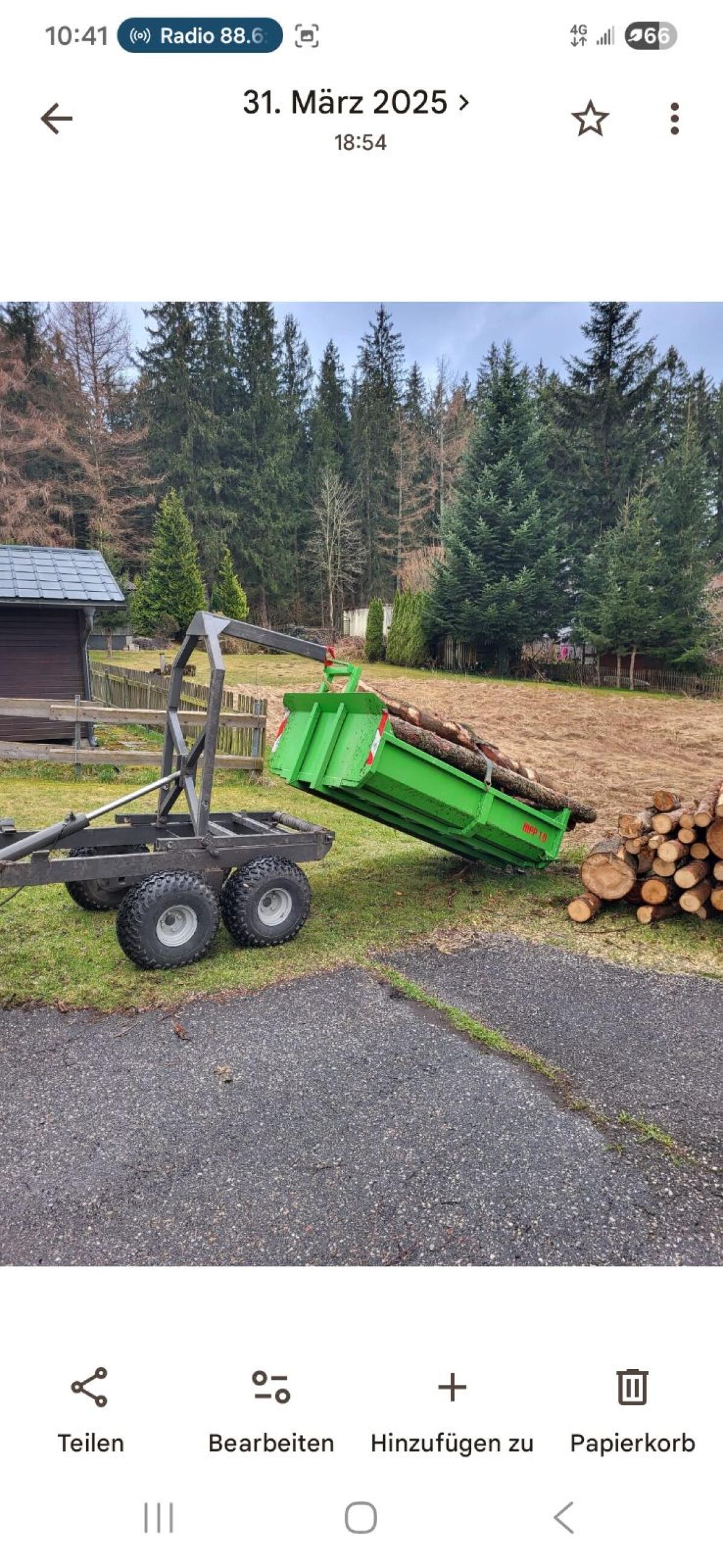 Eigenbau Hackenlift für Kleintraktor, Nutzlast 1.000-1.500 kg, Eigengewicht ca. 500 kg, 1.250 mm breit, Ladefläche 2.000 mm. Anhänger Kipper