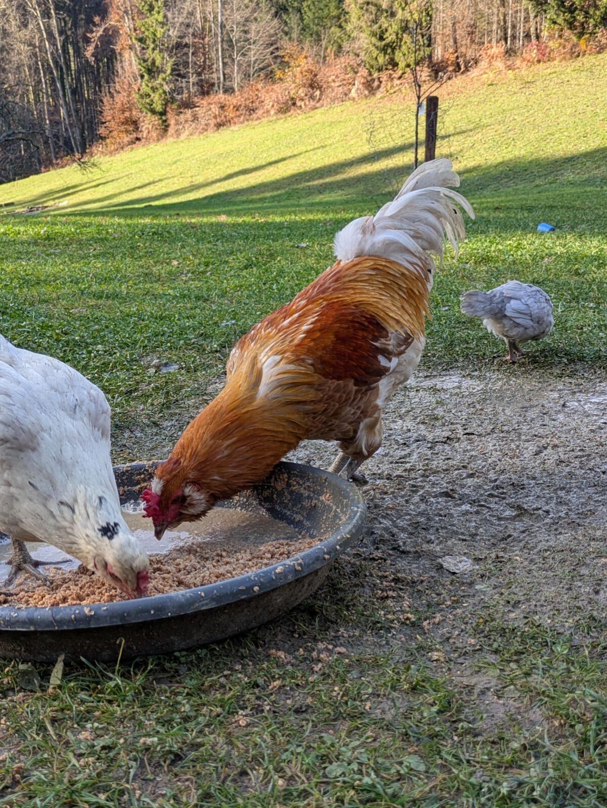 Mixhähne aus Lavender Araucaner und Marans in schwarz/rot und weiß/rot abzugeben. Von April 2025. Friedliche Tiere und andere Hähne sowie Katzen, Enten und Schafe ge