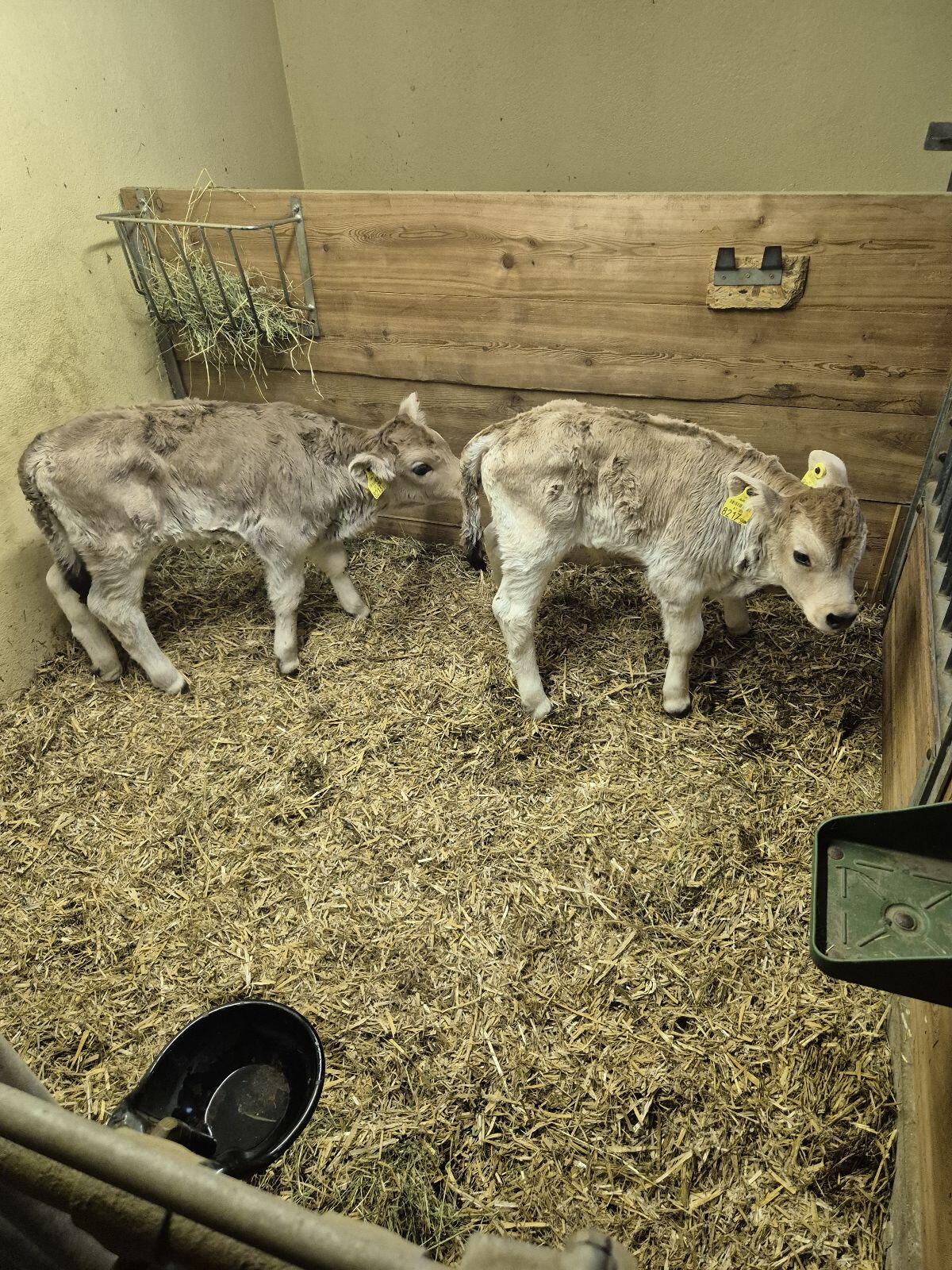 Verkaufe Hb Grauvieh Zwillingskälber, männlich und weiblich, vom Biobergbauern Heumilchbetrieb. Von sehr guter Milchkuh. Vater Alonso. 14 Tage alt. Förderbares Kalb.