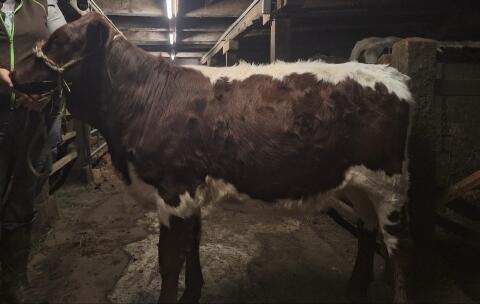 Gutmütiger Jungstier abzugeben. Geboren am 03.03.2025, hornlos, Vater mischerbig hornlos. Rindermarkt Dexter