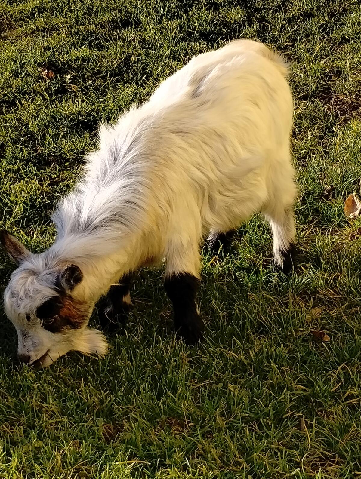 Verkaufe einen dreifarbigen, sehr klein bleibenden und genetisch hornlosen Mini-Zwergziegenbock. Alter: 9 1/2 Monate. Besichtigung nach Voranmeldung jederzeit möglic