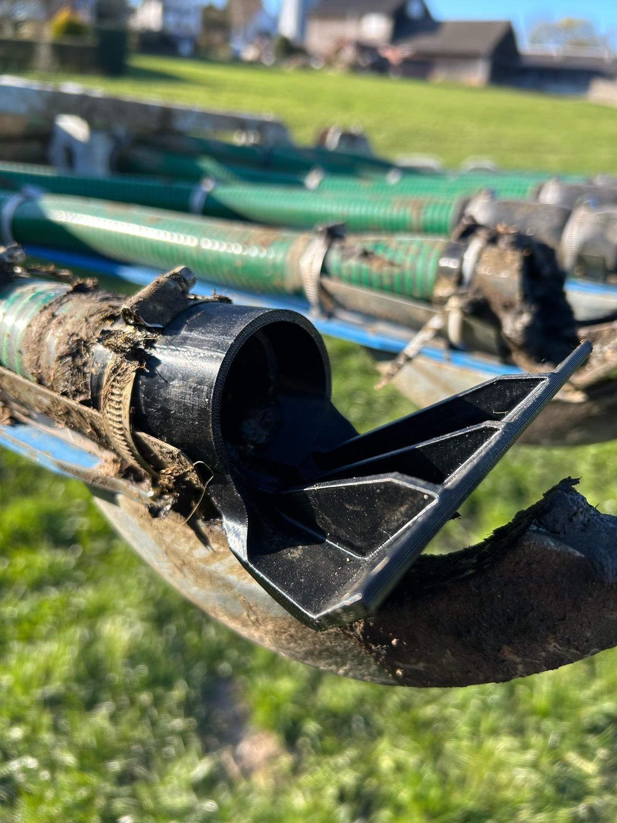 GVD-14: Die richtige Wahl für jedes Schleppschuhgestänge. Keine Güllewürste mehr, mindestens 30% breitere Verteilung, keine Reste im Futter, geringe Kosten, schnelle
