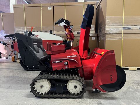 Honda Hybridschneefräse mit Raupenantrieb, Elektrische Lenkung per Knopfdruck, Elektrische Kaminverstellung Joystick. Die volle Motorleistung für Fräse, Fahren mit E