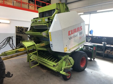 Maschine steht in einer HalleAusstattung VARIO 1080:Rapstrennmesser, links Rapstrennmesser, rechts und Transportbox Haspel Stahlzinken Halmteiler kurz, einstell