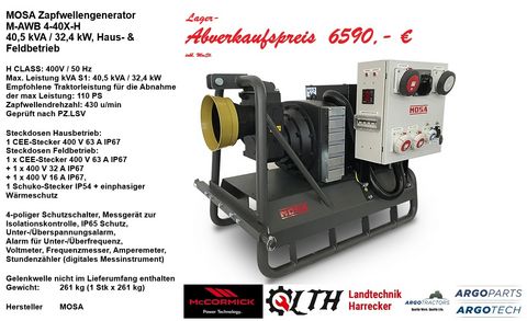 MOSA Zapfwellengenerator M-AWB 4-40X-H / IB - 1 Stk, 40, 5 kVA / 32, 4 kW, Haus- & FeldbetriebH CLASS: 400V / 50 HzMax. Leistung kVA S1: 40, 5 kVA / 32, 4 kWEmpf