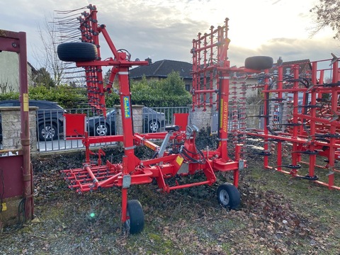 Zur Straßenfahrt umhängbar, Flügelschargrubber AB 4 m, Steinschlagsicherung mechanisch per Scherbolzen, Stabwalzen, Tellerscheiben, Grubberstiele sind in Ordnung, Um