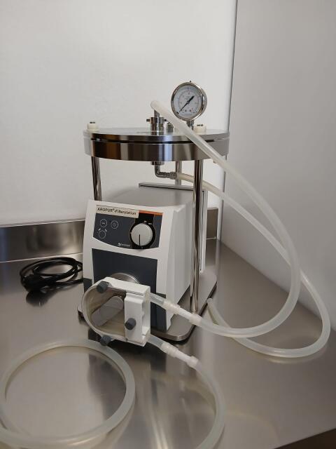 Verkaufe sehr gut gepflegte Edelstahl-Filterstation für Rundfilterplatten mit 22 cm Dm. Wurde zum Filtern von Edelbränden verwendet. Mit Heidolph Schlauchpumpe (von