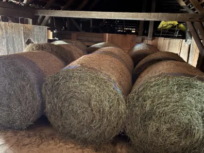 Verkaufe Bio Heurundballen, Ernte 2025, 10 Stk., 1. Schnitt und 9 Stk., 2. Schnitt, trocken geerntet und gelagert, frei von Ampfer, Dm. 1, 20 m, Preisangabe pro Rundb
