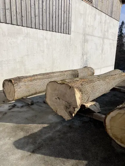 Verkaufe 2 Stk. Eschenbloch, 1x 4, 1 m Länge, 70 cm Dm. im Mittel, 1x 4, 1 m Länge, 67 cm Dm. im Mittel. Preis nach Vereinbarung. Holz Baumstämme