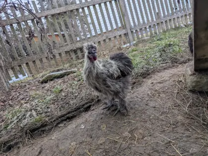 Junger Seidenhahn abzugeben. Er ist jetzt ca. ein halbes Jahr alt und beginnt gerade zu krähen. Hühner Seidenhühner