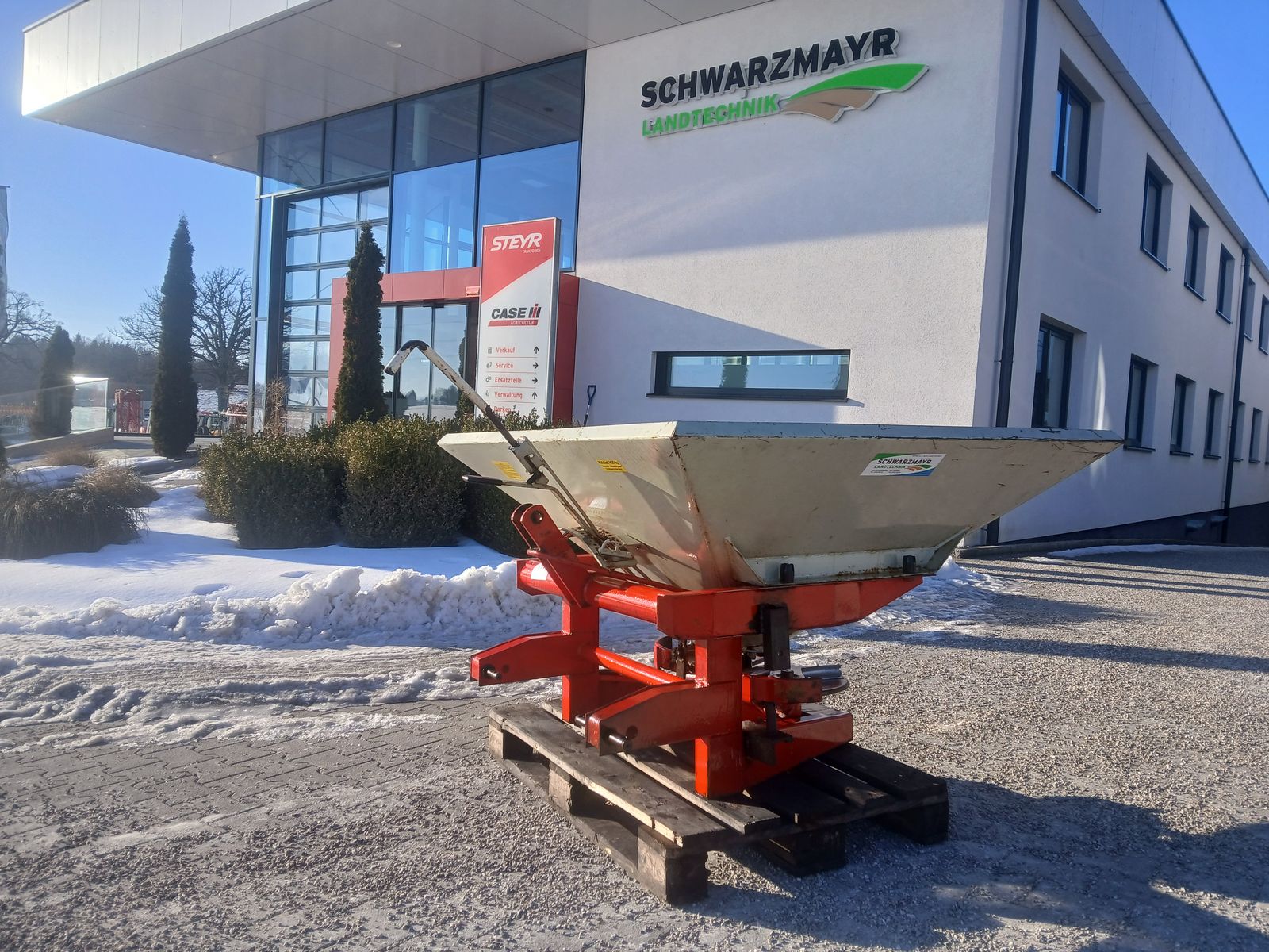 EDV: 71434Zweischeiben- Düngerstreuer- mit 600lt. Behälter- mit 3 Punktanbau- mit mech. Schieberbetätigung - mit Rührfinger - mit Gelenkwelle L= 1,