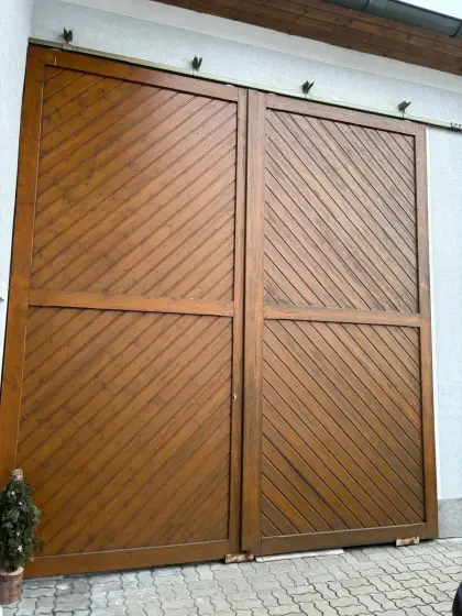 Verkaufe gebrauchte selbstgebaute Tore mit den Maßen pro Flügel: Breite 183 cm, Höhe 370 cm, inkl. Schienen. Preis pro Tor (2 Stk. vorhanden). Haus und Garten Tore /