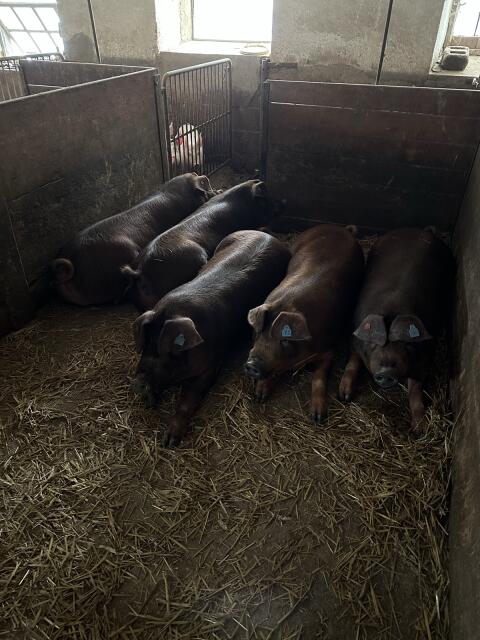 Wir verkaufen Duroc Jungsauen, belegt mit Duroc reinrassig, belegt mit Pietrain oder belegt mit Landrasse. Kleintragend ab € 600, -, Großtragend ab € 800, -. Schweinem