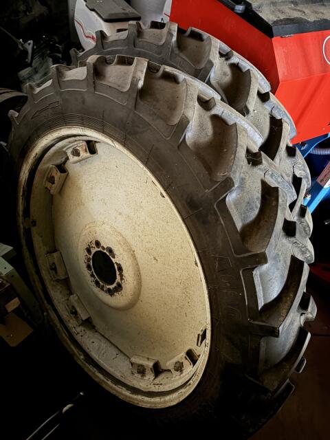 Verkaufe Pflegereifen mit Zwillingsradkupplungen in der Dimension 300/85R42, sie waren als Zwillingsreifen auf 540/65R34 montiert. Narbe passend auf CNH Hinterachse