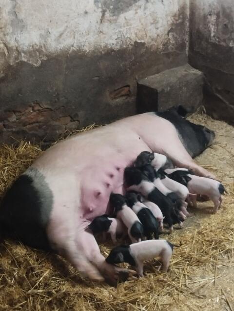 Ferkel zwischen 15 und 40 kg sowie einen 3j Schwäbisch Hall Eber, eine tragende Muttersau Turopolie gedeckt mit Schwäbisch Hall. Preis auf Anfrage. Schweinemarkt Sch