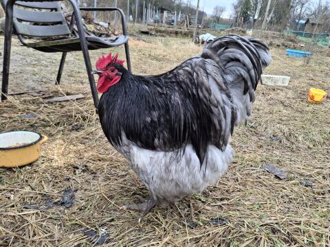 Mix Hahn Ritter Kunibert ist auf Suche nach einer eigenen Hühnerschar. Frühjahr 2025 geschlüpft, sehr zutraulich, sehr sanfter Charakter, aufgewachsen in Hobby-Freil