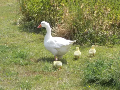 Die kleinere Landgans Schwurblerinchen ist ca. 4, 5 Jahre alt. Sie hat schon sehr tüchtig Junge großgezogen. Sie ist auf allen Bildern zu sehen. Auf dem letzten Bild
