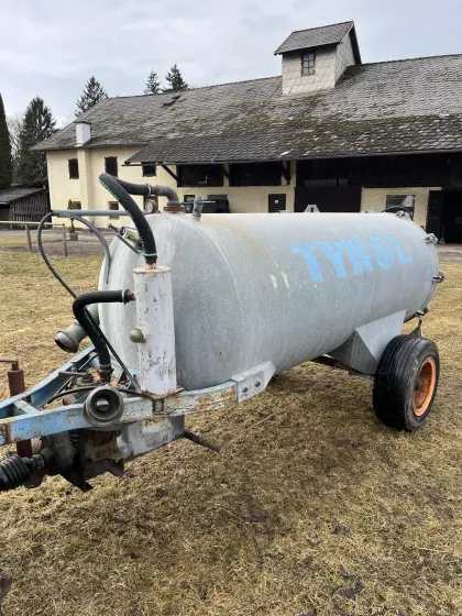 Verkaufe gut erhaltenes Vakuum-Güllefass TYROL, Größe ca. 3.000 l (geschätzt). Pumpe funktioniert einwandfrei, saugt schnell an. Mit neuem hydr. Schieber, Saugschlau