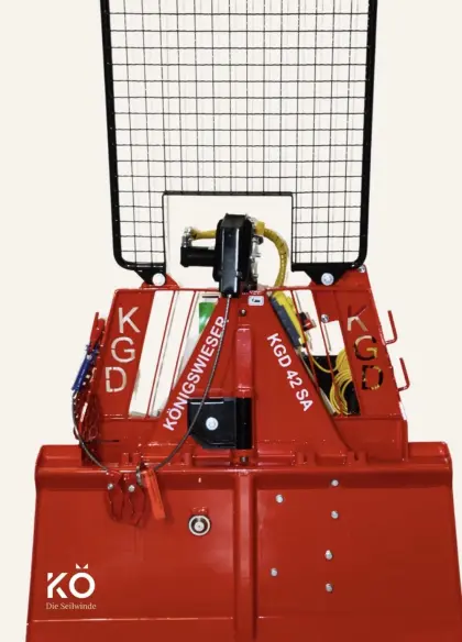 Prompt lieferbar, Schildbreite 1, 6 m, geringes Eigengewicht durch Stahlqualität ST 52 (370 kg), 80 m/10er geh. Seil mit Parallelhaken, inkl. Kipp-Stop, inkl. Notbedi